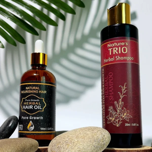Discover the ultimate solution for hair growth with our carefully selected Hair Growth Bundle, featuring Pure Growth Herbal Hair Oil and Nature’s Trio Herbal Shampoo. These potent, natural formulas are among the best hair growth products available, harnessing the power of Amla, Fenugreek, and other herbal ingredients to promote strong, luscious hair and address hair fall, dryness, and dandruff.